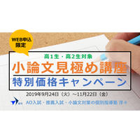 AO入試・推薦入試・小論文対策の塾 洋々、高1・高2向け 小論文見極め講座 期間限定Web申込特別価格を設定