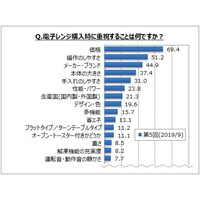 【電子レンジの利用に関するアンケート調査】電子レンジ購入時の重視点は「価格」7割弱、「操作のしやすさ」「メーカー・ブランド」「本体の大きさ」などが各4~5割