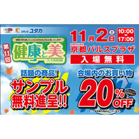 11月2日(土) 会場:京都パルスプラザ 毎年恒例の DRUGユタカ「第11回 健康と美フェスタ2019」を11…