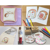 テンプレートを使った「食パンアレンジ」、スタンプを使い500色の色えんぴつで仕上げる「ポストカード」や「缶バッジ」作り、転写シートで「サコッシュデザイン」をするワークショップが10/13~14に開催