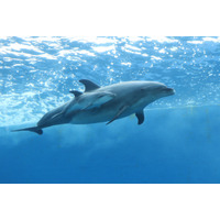 イルカの親子が寄り添って、元気に遊泳中 『横浜・八景島シーパラダイス』の水族館「ドルフィン …
