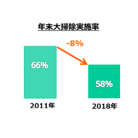 <花王「年末大掃除の実施」に関する調査結果 >2018年大掃除実施率は58%。令和初の大そうじは77%が実施予定 ~わが家に1年間の感謝をこめて 大そうじ~