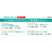 生徒の継続率に悩むこども向け教室運営者様向けのセミナー他、目的別で選べる「こども向けプログラミング教育」導入セミナーを2020年1月、東京・大阪で開催!