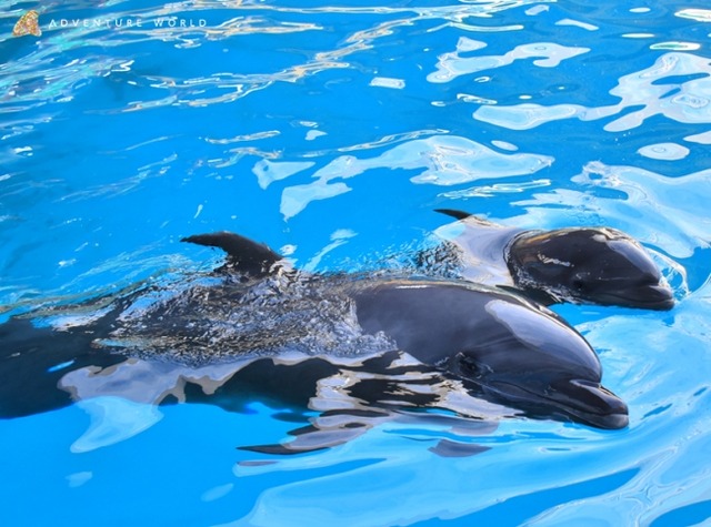 アドベンチャーワールド(和歌山県白浜町)内の、「マリンウェーブ」で現在公開中のバンドウイルカの親子(2018年10月11日生まれの赤ちゃんと母親)は、同居しているバンドウイルカの出産時期が近付いたため、1月7日(月)より公開を一時休止し、今後はバッグヤードにて3頭で暮らします。