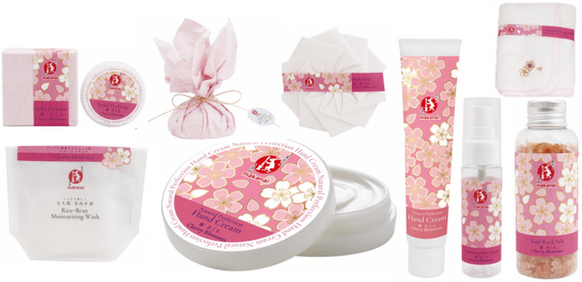 「桜咲くセット」は新商品の「もち肌米ぬか袋(桜) 」や「凍りこんにゃくスポンジ(桜)」など、