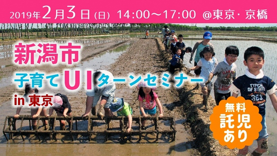 新潟市は,首都圏等にお住まいのUIターン希望者を対象に、「子育て」をテーマにしたトークイベントを東京で開催します。日時は平成31年2月3日(日)14時。会場は「移住・交流情報ガーデン」です。このイベントでは、新潟市にUIターンし、子育てをしている先輩家族をゲストに招き、新潟市の子育て環境や、新潟暮らしについてありのままをお話しいただくものです。