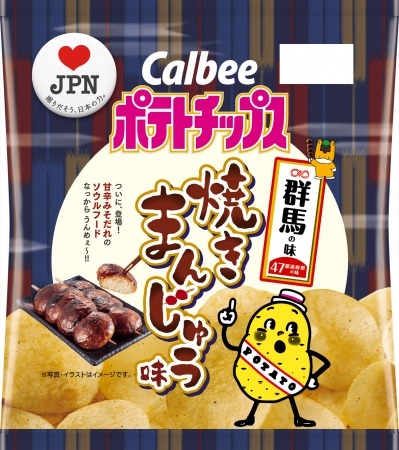 カルビー株式会社(本社:東京都千代田区、代表取締役社長兼CEO:伊藤 秀二)は、群馬県民のソウルフード「焼きまんじゅう」の味わいを再現した『ポテトチップス 焼きまんじゅう味』を数量限定・期間限定で2019年1月21日(月)、群馬・茨城・栃木・埼玉・千葉・東京・神奈川・山梨(8都県)で発売します。また、カルビー直営店及びアンテナショップでも随時、販売予定です。商品は無くなり次第終了となります(3月上旬終売予定)。
