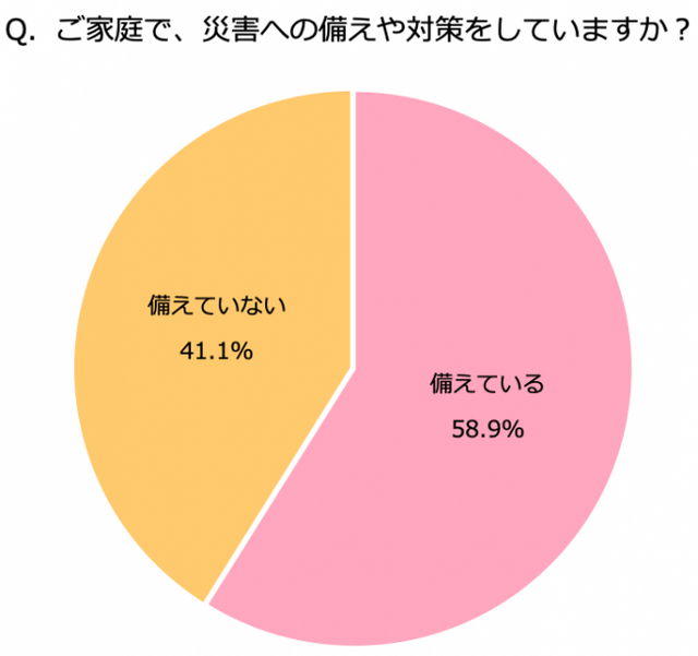 家庭で災害への備えや対策をしているか質問したところ、「備えている」と回答した方は約6割。反対に「備えていない」と回答した方は約4割という結果になりました。