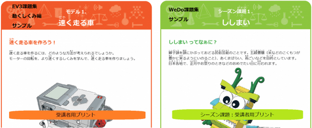 「WeDo 2.0課題集」は、より低年齢(5歳~)のお子さまを対象として、ロボットづくりに触れ、プログラミングを楽しみながら学ぶことに主眼を置いた内容です。一年を通して月ごとの行事や季節を感じさせるシーズン課題(12ケ)と、学びを応用して取り組むステップアップ課題(12ケ)を用意しています。