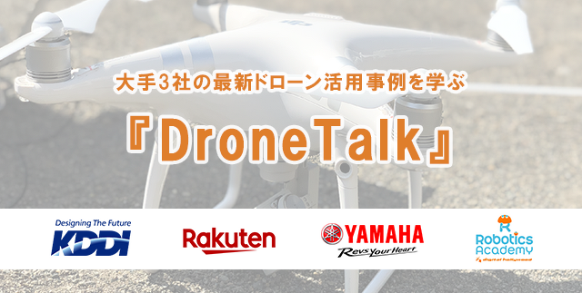 ロボティクスアカデミーでは、“最新のドローン活用”を知ってもらうことで、ドローンの活用法を考えるきっかけを作りたいと考え、今回、ドローンのトークイベント「DroneTalk(ドローントーク)」を開催することとなりました。