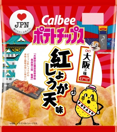 カルビー株式会社(本社:東京都千代田区、代表取締役社長兼CEO:伊藤 秀二)は、大阪のソウルフードである「紅しょうが天」の味わいを再現した「ポテトチップス 紅しょうが天味」を数量限定・期間限定で2019年1月21日(月)、大阪・滋賀・京都・兵庫・奈良・和歌山(6府県)で発売します。また、カルビー直営店及びアンテナショップでも随時、販売予定です。商品は無くなり次第終了となります(3月上旬終売予定)。