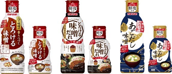マルサンアイ株式会社(本社:愛知県岡崎市、代表取締役社長:渡辺 邦康)は、鮮度ボトルを採用しただし入り液状みそ「鮮度みそ」シリーズに、「香りつづくとろける味噌 八丁味噌使用赤だし」(410g、205g)ならびに「とろける味噌だれ 八丁味噌使用」(410g、205g)を2019年3月1日(金)にリニューアル発売いたします。また、「香りつづくとろける味噌 国産原料100%みそ使用あごだし」205gサイズをリニューアル発売、410gサイズを新発売いたします。