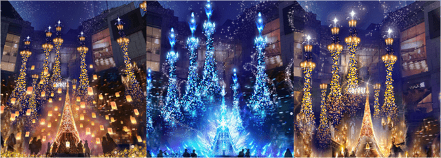 ※1週間ごとにディズニー映画『アナと雪の女王』『塔の上のラプンツェル』の世界観をイメージしたイルミネーションを交互に開催