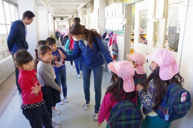 麗澤幼稚園(千葉県柏市/園長:岡田 喜)では、小学校へのスムーズな入学を目的として、H20年度より年長組が千葉県柏市にある柏市立光ヶ丘小学校協力のもと、小学校に実際に訪問して交流を行っています。11回目の今回は新たに、小学校の生徒との交流だけでなく、園児たちが「小学校ってこんなところ」というイメージができるように、小学生による小学校生活の紹介、学校内の案内など、幼稚園児が小学校生活をイメージしやすいような活動を中心としたプログラムで行います。