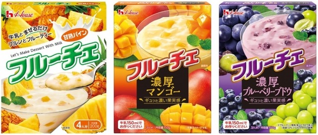 ハウス食品は、牛乳と混ぜるだけで作ることができる人気のデザートベース、ハウス「フルーチェ」の新アイテムとして「フルーチェ」<甘熟パイン>と「フルーチェ」<濃厚マンゴー>、「フルーチェ」<濃厚ブルーベリーブドウ>を、1月21日から全国で発売します。