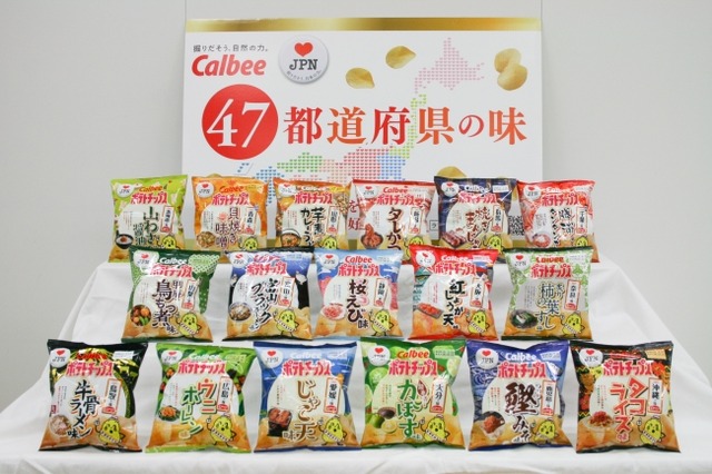 カルビーは、47都道府県の「地元ならではの味」を開発する「(ハート) JPN(ラブ ジャパン)」プロジェクトを発足し、2017年度に地元の味を再現したポテトチップスを発売しました。2年目となる2018年度も、前年度に引き続き3回(第1弾、第2弾、第3弾)に分けて47都道府県の味のポテトチップスを順次発売します。