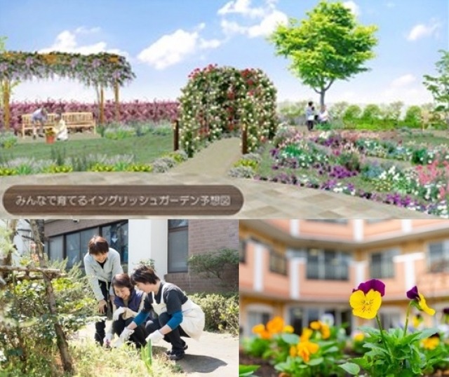 ガーデニングが好きな人が集まる「ガーデニング特化型ホーム」施設の庭をご利用者様と一緒にイギリス式庭園に造園。