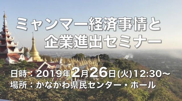 本セミナーは、駐日ミャンマー連邦共和国大使館より参事官をお招きしてミャンマーのリアルな状況をお伝えするほか、アジア経済に精通する経済アナリストの森永康平氏によるアジア経済を俯瞰してのミャンマー経済の位置付けを客観的にお伝えし、ミャンマービジネスのための具体的な進出支援策を横浜市、KDDI株式会社、しゃらぽより提供させていただくといった盛りだくさんなセミナーとなっています。