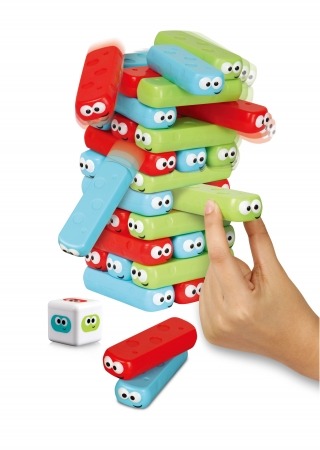 「アンバランス フレンズ」は、色のブロックを一段ずつ互い違いにタワー状に積み上げた状態からはじめるゲームです。プレーヤーはサイコロを振り、出た色と同じ色のブロックを引き抜き、上に積みあげていきます。順番に行い、タワーを倒した人が負けになります。タワーのバランスを見ながら慎重かつ戦略的にブロックを抜いて積みあげていくことがポイントです。