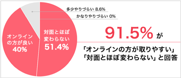 オンライン家庭教師の指導はいかがですか?」という質問では、88.5%が「(オンライン家庭教師は)とても良い」、21.4%が「対面と変わらない」と回答。
