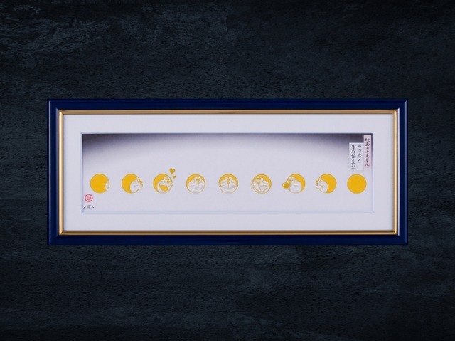 今回作品は、「映画ドラえもん のび太の月面探査記」の公開を記念して、月の満ち欠けをドラえもんの顔に見立てた特別限定デザインを2種類ご用意。月の色合い鮮やかな黄色いドラえもんが映える黄色Ver.と、お馴染みのドラえもんの青いカラーリングで統一感を出した青Ver.の2種類を特別にご用意しました。最高級の和紙(越前生漉奉書)の風合いと、江戸時代から継承される浮世絵木版画の彫師、摺師の匠の技よる、手彫りの線の美しさと手摺の豊かな色彩を楽しんで頂けます。4月下旬から順次発送予定です。