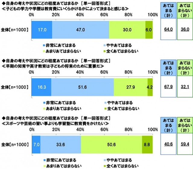 学力と教育費 親の6 割半が「子どもの学力や学歴は教育費次第」と感じる