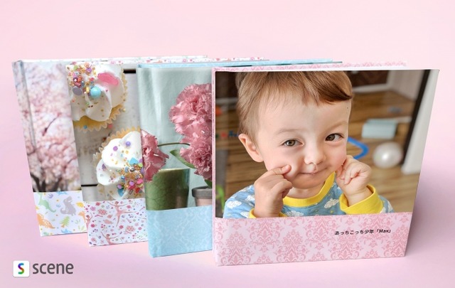 「Scene ストア」で注文可能なフォトブックの表紙に柄入りバリエーションが追加され、既存の白無地を含め5種類から選択できるようになりました。