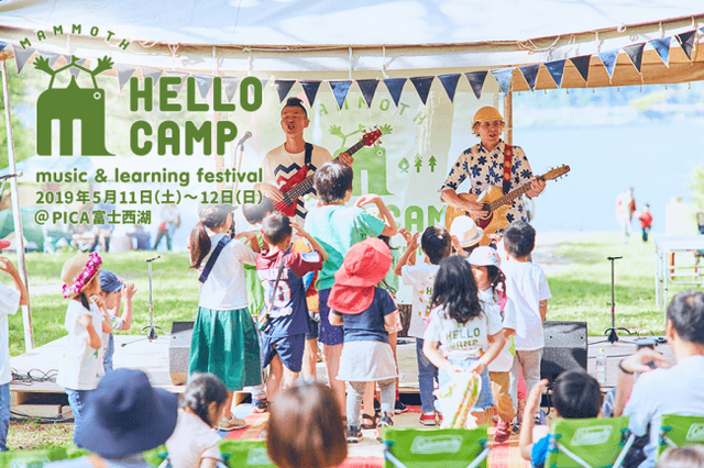 アウトドアでのライブやワークショップなど、大人と子どもが一緒になって楽しめる野外フェスティバル「mammoth HELLO CAMP music & learning festival 2019」が、2019年5月11日(土)・12日(日)に山梨県のPICA富士西湖で開催されます。