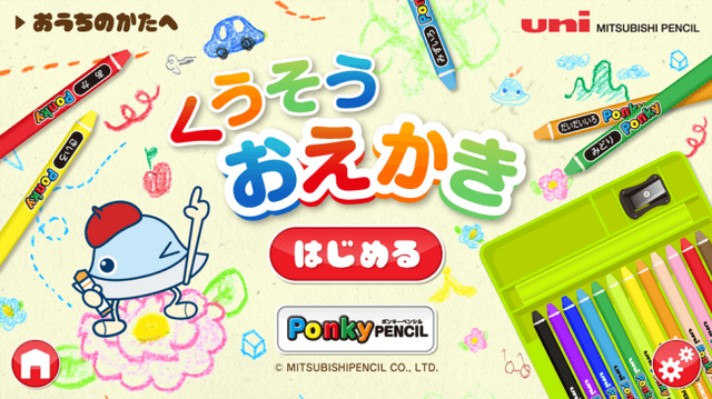 今回三菱鉛筆とコラボレーションするアプリ内のゲーム「くうそうおえかき」は、動物や乗り物などの5つのカテゴリ・64種類の下絵から、「ポンキーペンシル」を使って自由にお絵描きができます。いろいろなテーマでお絵描きをすることで、お子様の自由な想像力を育みます。