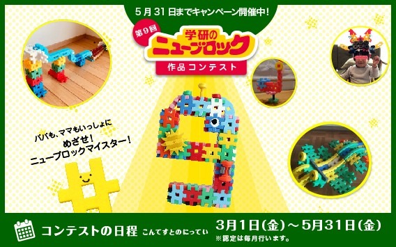 株式会社学研ホールディングス(東京・品川 代表取締役社長:宮原博昭)のグループ会社、株式会社学研ステイフルは、2019年3月1日(金)~5月31日(金)の3ヵ月間、“第9回・ニューブロック作品コンテスト”を開催いたします。
