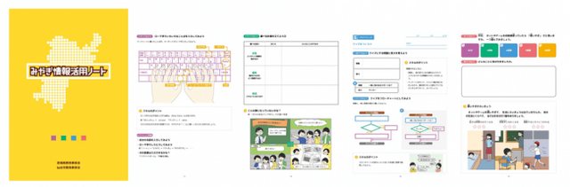「みやぎ情報活用ノート」は、情報活用能力育成のために必要な、活動スキル・探究スキル・プログラミング・情報モラルの4つの分野を1冊にまとめました。各分野、小学校低学年向け・中学年向け・高学年向けの3種類のワークシートと、教員向けのモデル指導案で構成されています。このような複数分野にまたがる発達段階に応じた情報活用能力育成の教材は全国初となります。小学生向けの教材に続き、今後は中学生向け、高校生向け教材も開発を行っていきます。