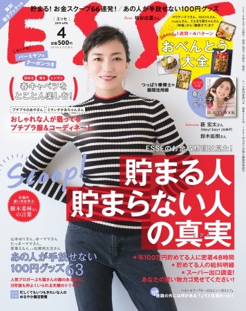 ESSE4月号では、その結果”貯まるコツ”のスクープに成功! やりくり術はもちろん、生活習慣に取り入れたいコツを集めた大特集です。