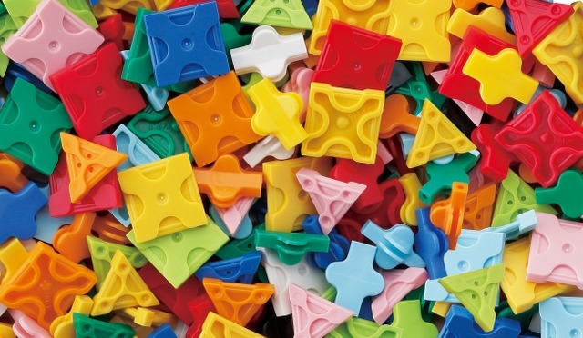 7種類のパーツから平面、立体、幾何学体とあらゆる形に変化する全く新しい発想から生まれたパズルブロックです。奈良県で製造している日本産の玩具で全国の幼稚園、保育園で広く親しまれています。