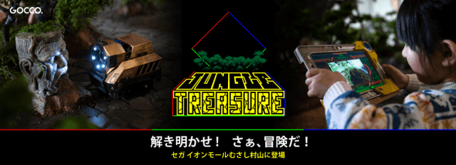 『ジャングルトレジャー』は、4m×4m四方のプレイフィールドのジャングルにおいて「探索ロボ」を「タブレット」で操作して冒険する「リアルリモートRPG(※1)」です。