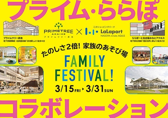 【開催場所】 ららぽーと名古屋みなとアクルス、プライムツリー赤池