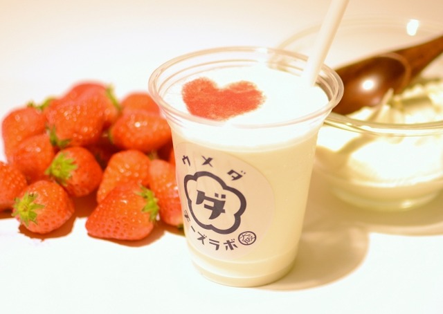 人気の「飲めるチーズケーキ」から、LOVEが飛び交う「ホワイトデーにもぴったりなキュートで美味しい味」が登場!ドライいちごのパウダーをハート型にあしらい、中には、”ストロベリーを練りこんだマスカルポーネのチーズ”が入っていて、ストローでゆっくり混ぜていくと、ほのかにピンクに変化していくキュートなドリンクです。