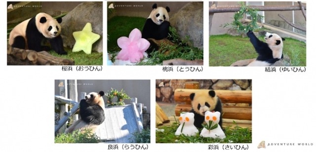 ふたごのジャイアントパンダ「桜浜(おうひん)」「桃浜(とうひん)」には桜と桃の花の形の氷、2歳の「結浜(ゆいひん)」にはリボン型の氷、母親「良浜(らうひん)」には大きなハート型の氷、「彩浜(さいひん)」には氷やニンジンをキャンディーに見立てたプレゼントを贈ります。