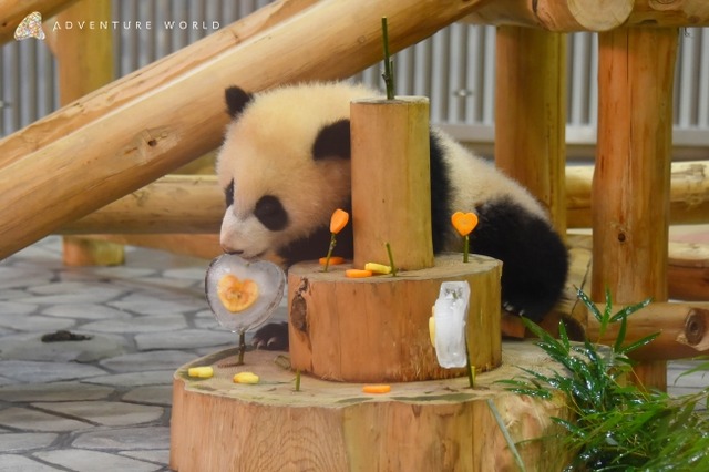 アドベンチャーワールド(和歌山県白浜町)で、2018年8月14日(火)に誕生したジャイアントパンダの赤ちゃん「彩浜(さいひん)」が、無事に生後7か月を迎えました。2月のハーフバースデーにプレゼントされた滑り台や木登りが出来る遊具などで上手に遊べるようになり、高さ約2mの遊具の最も高い場所にも登れるようになりました。これからも彩浜の成長を温かく見守ってください。