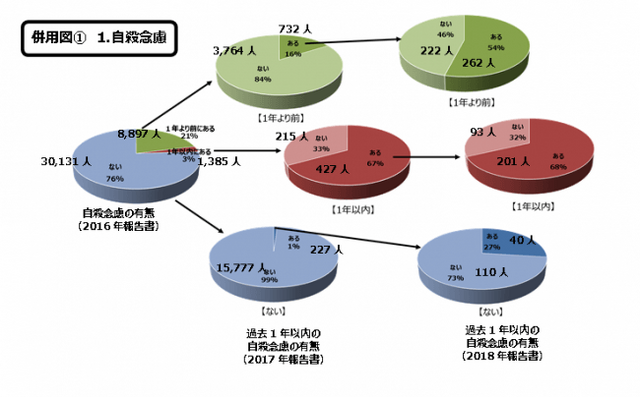 2016年(第1回)時点で「本気で自殺したいと考えたこと(自殺念慮)」が1年以内にある者を2017年、2018年と継続して調査した。結果、2017年時点では、67%が「本気で自殺したい」気持ちが継続、2018年時点では68%が継続していた。