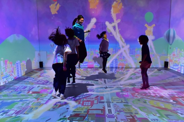 キッズデザイン賞を受賞したAR砂遊び「SAND PARTY! 」や、展開図に塗る配色で強さが変わるデジタル紙相撲「PAPER RIKISHI」算数パズルアトラクション「NUMBER SPLASH」など、ファミリー向けのアトラクションが多数ある子どもの創造力を鍛える屋内型の体験型知育デジタルテーマパーク。