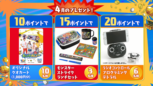 ※本キャンペーン対象番組は『モンストテレビ』になります。『モンストテレビサタデー』、『子育てTV ハピクラ』では実施しません。
