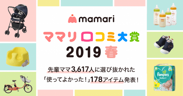 ママ向けNo.1アプリ(※1)「ママリ」を提供しているコネヒト株式会社(本社:東京都港区、代表取締役社長 大湯 俊介、以下「コネヒト」)は3,617人のママユーザーの声を集め、「使ってよかった」「役に立った」と思う商品・サービスをまとめた「ママリ口コミ大賞2019 春」を発表いたします。
