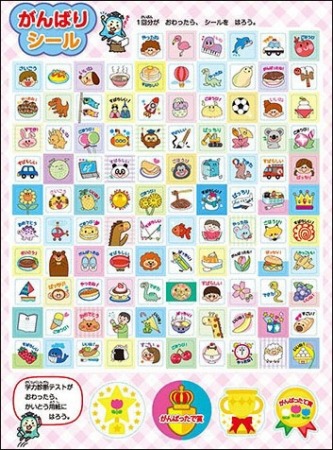 さらに,1・2年生には,「がんばりシール」がついています。頑張って問題を解いたお子様に,ご褒美として使うことができます。