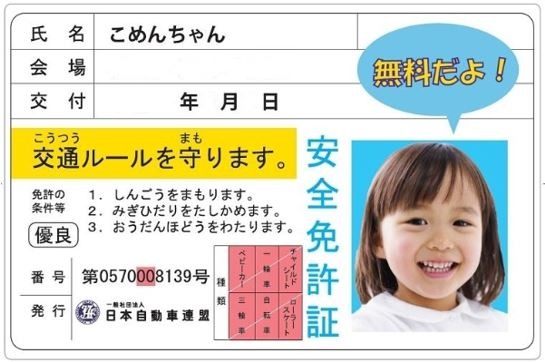 内 容:子ども安全免許証の発行(会員・一般を問わず発行無料)