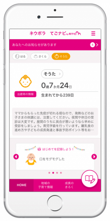 ●子どもの成長記録や健康データを、家族のスマートフォンなどでも閲覧でき、SNSにも投稿可能
