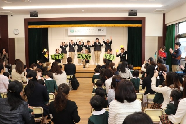 入園式では、尾藤拓史園長のあいさつの後 先生たちによる「おおきなかぶ」のステージがあり、新園児たちは身を乗り出して、4月1日から始まる新しい園生活が待ちきれない、という様子でした。