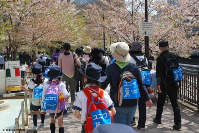 例年、赤ちゃんからお年寄りまで、数百人もの幅広い年齢層の方々に参加いただいているユニセフ・ラブウォーク。昨年は、529名の方々が、桜の花びらが舞う6キロと12キロのコースを踏破されました。今年は、8月に横浜でTICAD7(第7回アフリカ開発会議)が開催されることから、港区に多く集まるアフリカ各国大使館を巡るコースを設定。同会議主催者より、「TICADパートナー事業」としても認定いただきました。参加者のみなさまには、「世界保健デー」にちなんだ簡単なクイズラリーにも参加していただく予定です。