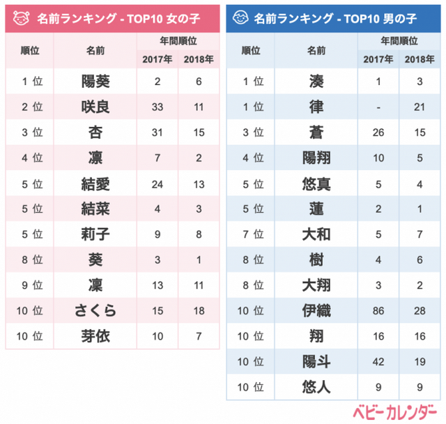 ■2017年生まれの赤ちゃんの名前ランキング https://baby-calendar.jp/special/name/2017