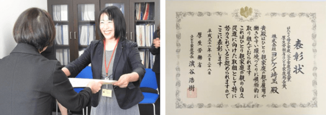 つくる人から笑顔に。をテーマに全国で“食材(ミールキット)宅配サービス”を提供するヨシケイグループのフランチャイジーである(株)ヨシケイ埼玉(本社:埼玉県所沢市 代表:室伏裕司)は、母子家庭の母または父子家庭の父の就業を積極的に支援している企業として、厚生労働省より平成30年度「はたらく母子家庭・父子家庭応援企業表彰」を受賞しました。(株)ヨシケイ埼玉では社員439名中、82名がひとり親として勤務しています。ヨシケイグループでは、平成28年度の(株)ヨシケイ石川、平成29年度の(株)ヨシケイ富山に続き、本年度受賞の(株)ヨシケイ埼玉と、3年連続の受賞となりました。