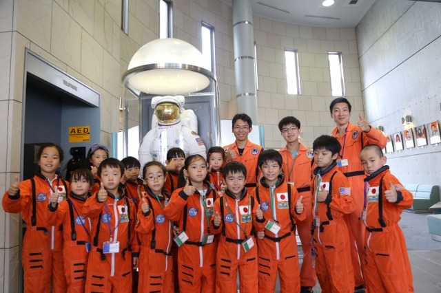 宇宙服を実際に着用して宇宙について学ぶワークショップ。ラジオ体操をしたり、訓練に参加したり、宇宙飛行士気分を味わっていただけます。